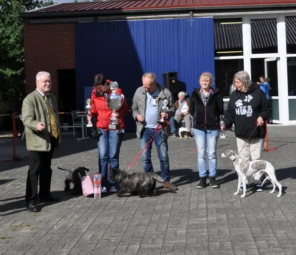 Die junge Whippet Hündin White Winter von der Oelmühle, Besitzerin Rita Griese aus Schöppingen erhielt den 3. Platz.