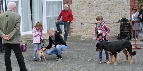 Im Sonderring Kind mit Hund traten Mara Elfi Daniel aus Duisburg mit ihrer Französichen Bulldogge Akanda von den Bexx Bulls und Anna-Lena Bader aus Nordstemmen mit ihrem Hovawart Aemely von der Metelener Heide, an. Beide wurden stolze Empfängerinnen eines Pokals, einer Urkunde und Geschenken für den 1. Platz.